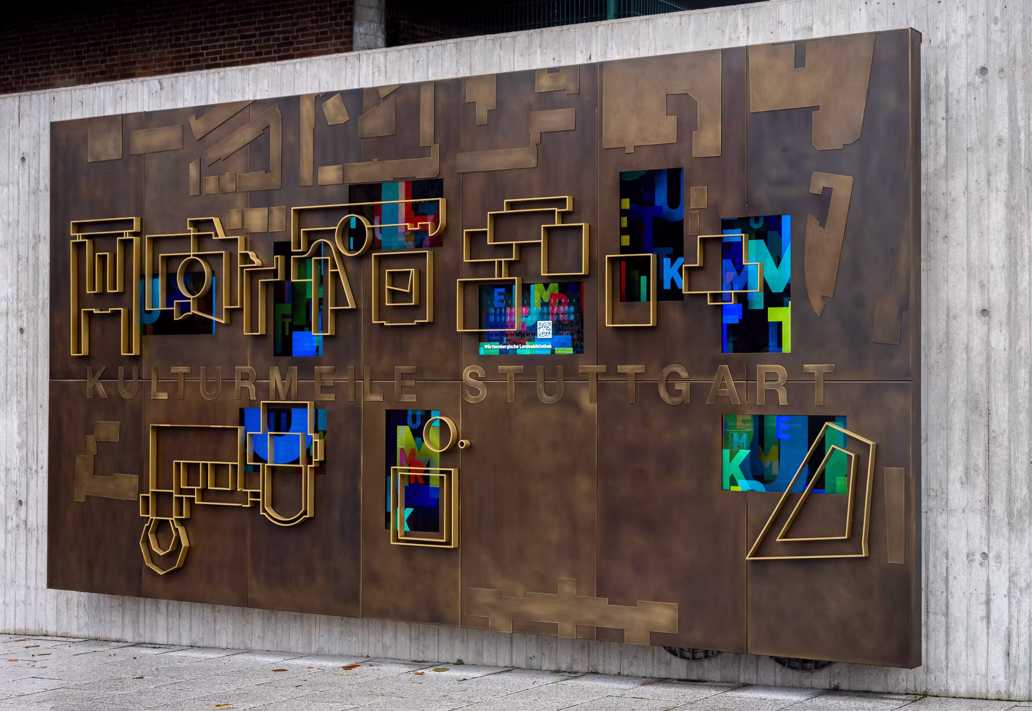 Im Auftrag des Ministeriums für Kultus, Jugend und Sport Baden-Württemberg und in Zusammenarbeit mit dem Amt für Vermögen und Bau ist eine 6 × 3 Meter umfassende Installation aus handbrüniertem Messing entstanden, die mit aufgesetzten Messingapplikationen versehen ist. Sie gibt den Lageplan der Kulturmeile als dreidimensionaler Stadtplan wieder und hebt die Kultureinrichtungen der Umgebung als Gebäudekonturen hervor. In die Skulptur integriert sind neun Monitorflächen: Jede einem der neun Häuser zugeordnet, geben sie als digitale Fenster Einblicke in die Institutionen, informieren über aktuelle Angebote und bieten an, sich über QR-Codes vertiefend mit den Kultureinrichtungen zu befassen. Neben der Hervorhebung der einzelnen Häuser bilden die neun Monitore in der Bespielung eine gemeinsame Medienfläche, die die ganze Kulturmeile und ihr vielfältiges Angebot erlebbar und anschaulich macht. Die außergewöhnliche Kombination aus Medien und Messing ist in Zusammenarbeit mit der Reinhardt GmbH aus Bad Rappenau geplant und realisiert worden, die die anspruchsvollen Metallarbeiten ausgeführt hat.
